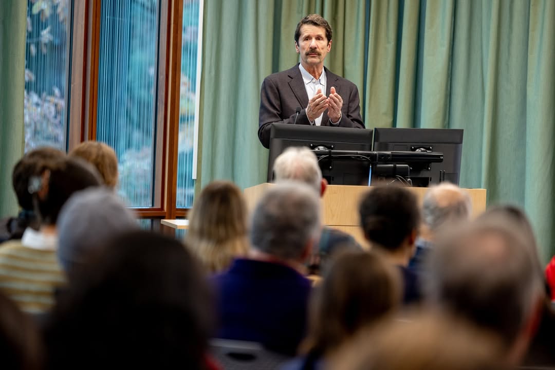 James Balog, an environmental photographer and filmmaker known for documenting the relationship between humanity and nature, presented a lecture at Cornell University. Speaking as part of the Climate Impact Series hosted by The 2030 Project and the Cornell Atkinson Center for Sustainability in partnership with the A.D. White Professors-at-Large Program, Balog shared the stories behind his striking images. His work spans more than four decades and highlights how human activities impact Earth’s climate, landscapes, and the balance among earth, air, fire, water, and tectonic forces.